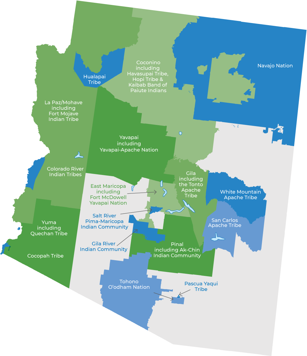 - Coconino including Havasupai Tribe, Hopi Tribe and Kaibab Band of Paiute Indians