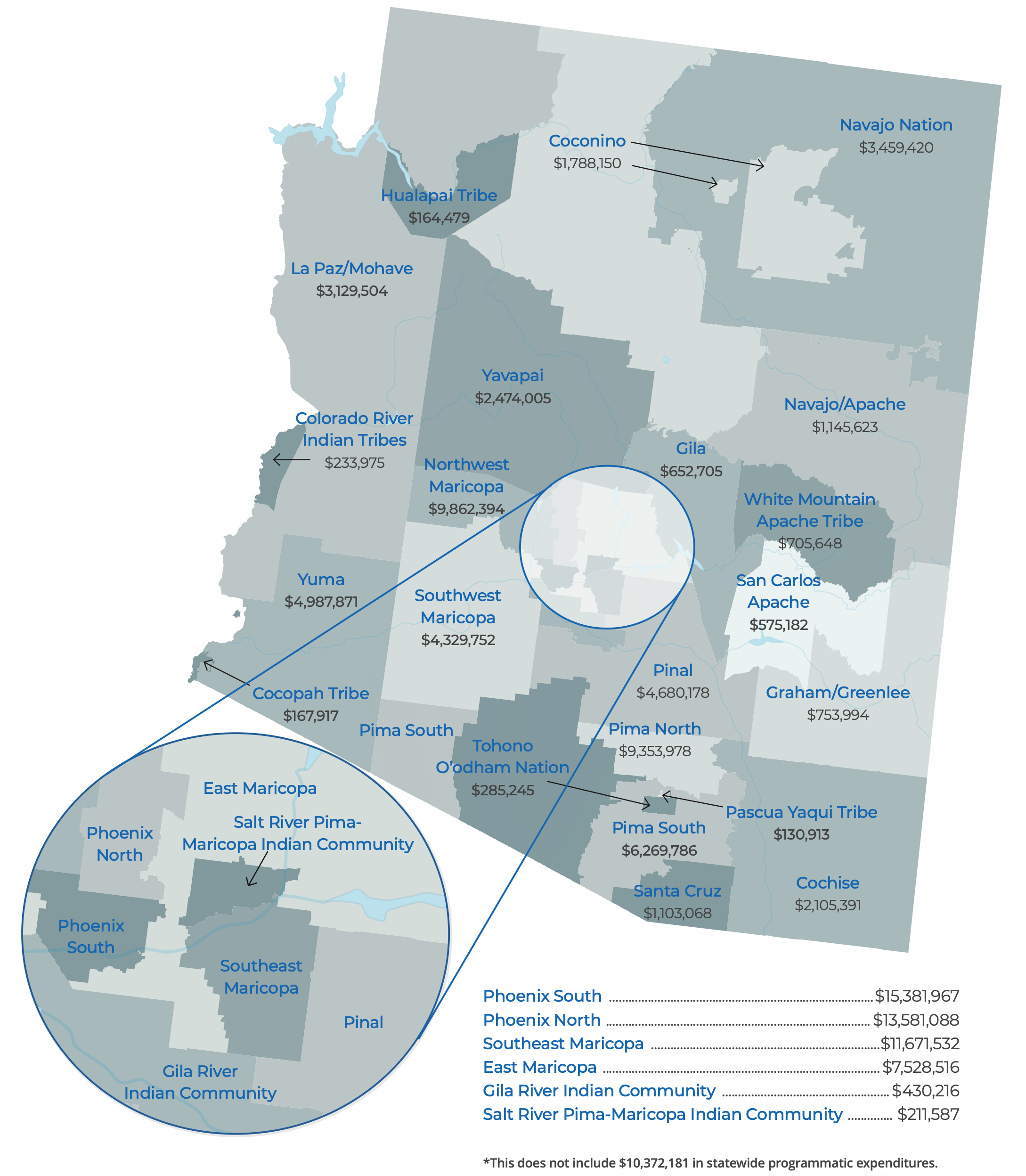 First Things First is currently funded by a voter-enacted tax on tobacco products. The amount of money allocated to each FTF regional partnership council is based on the number of children birth through age 5 in their community, with extra consideration given for children living in poverty. Each regional partnership council, comprised of dedicated local volunteers, studies the unique needs of its community and decides how funds will be used to best support its young children and families.